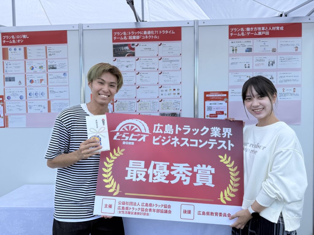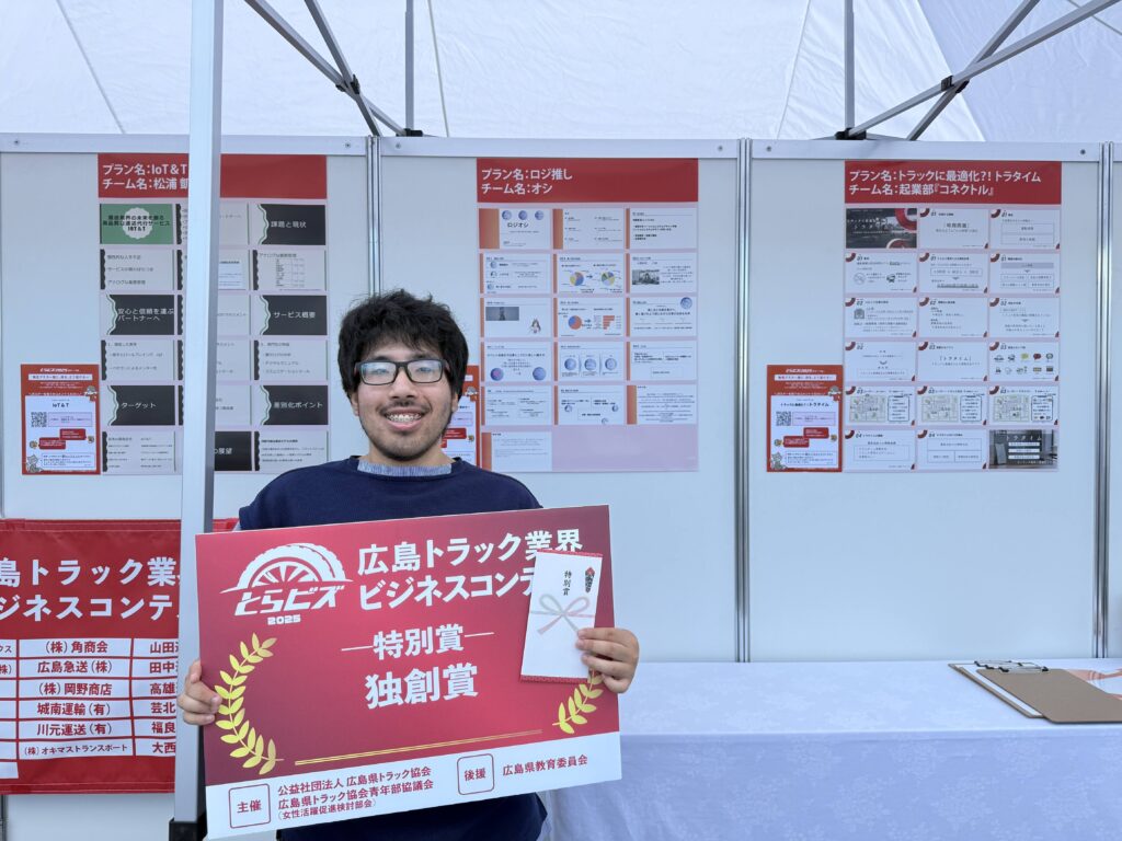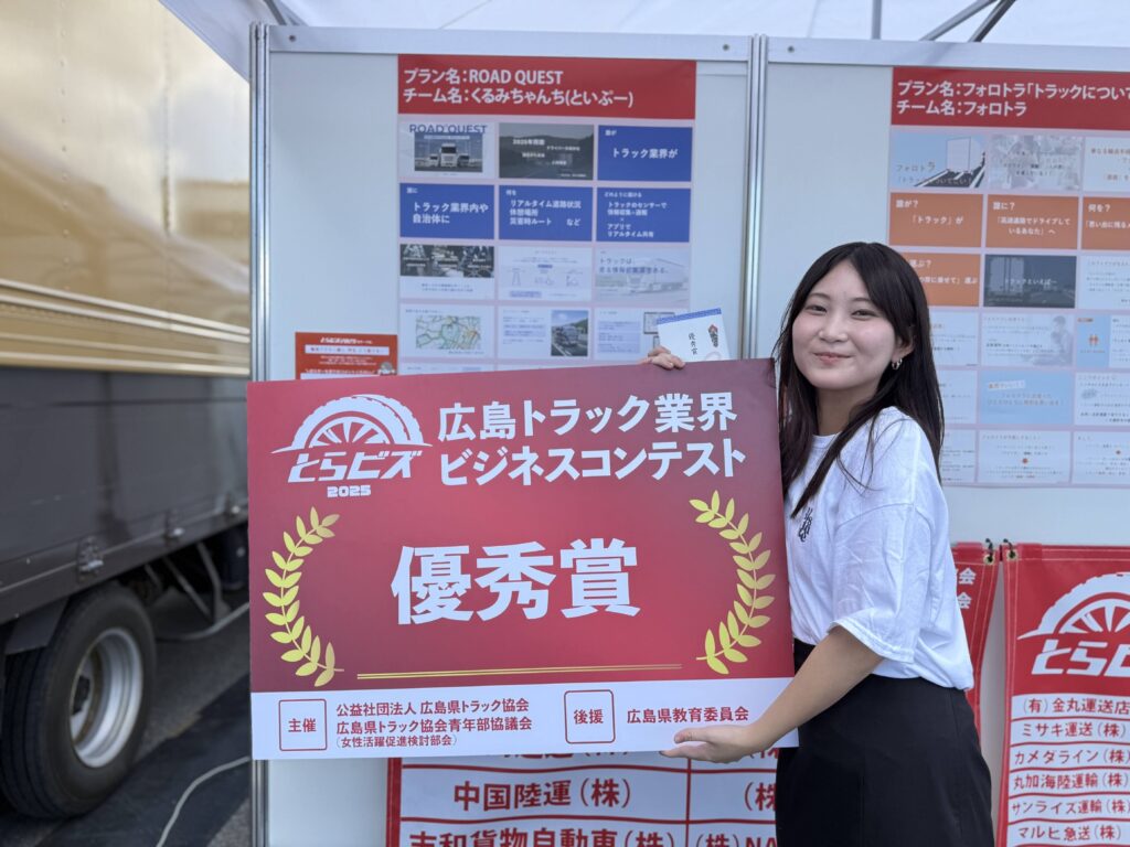 2025年10月12日に行われた、ひろしまトラックまつり2025の会場にて、第4回広島トラックビジネスコンテスト「とらビズ!」の「結果発表/授賞式」が行われました。